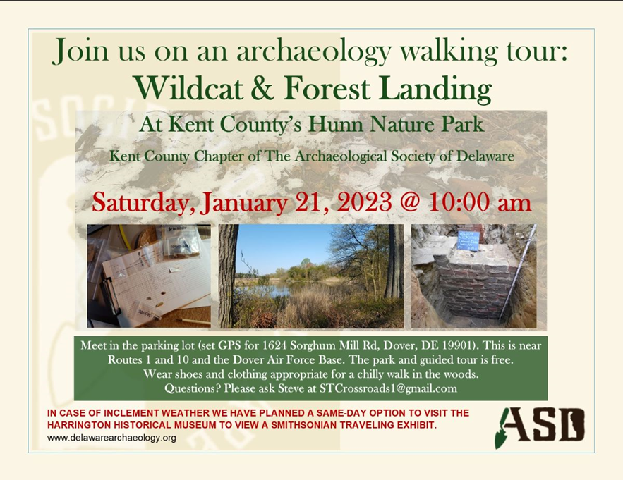 The Archaeology Society of Delaware has been doing archaeology work at Wildcat and Forest Landing for several years. Here is a link to their site. Once there, click on the “Wildcat Project.”